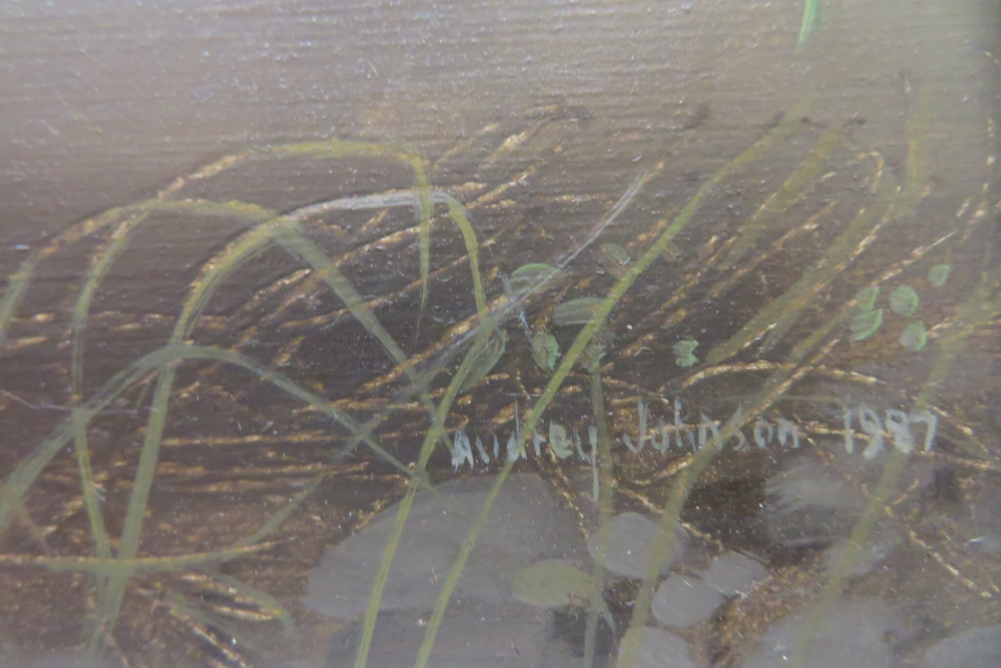 DETAIL: Johnson lived in Cartmel Fell Cumbria with her husband and fellow artist Claude Harrison (1922-2009). Each clearly influenced one another’s work with Audrey focusing on floral still life and nature whilst Claude on figurative conversational pieces.