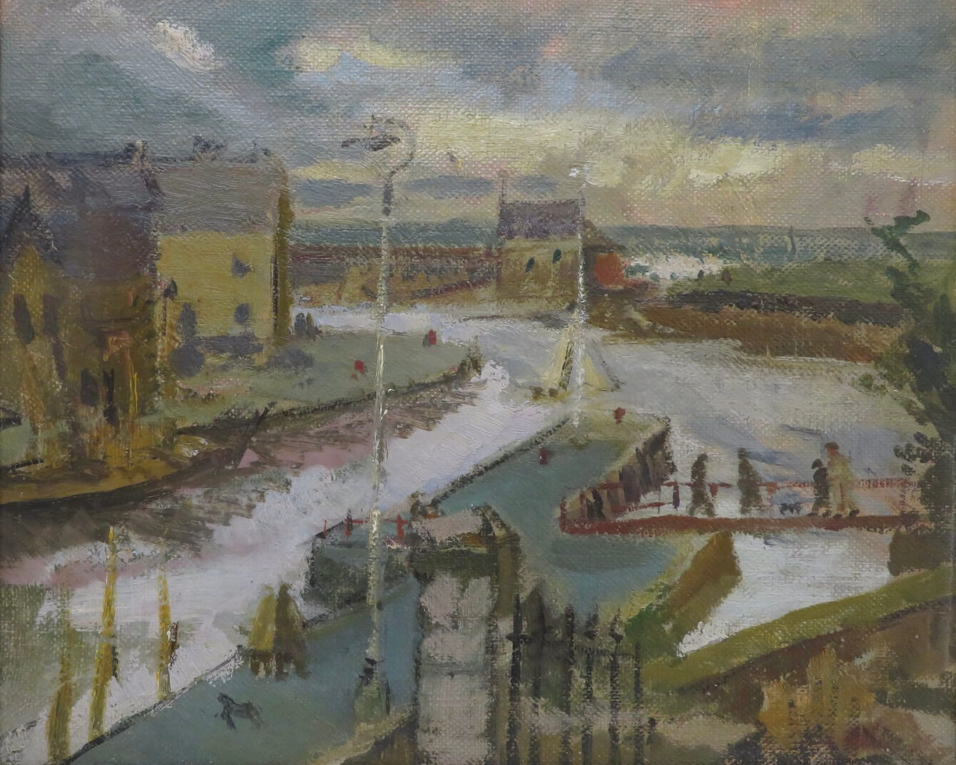 DETAIL: Artist, muralist, designer and teacher, born in Acton, west London, known to friends as Kay, who prior to 1938 exhibited as Saywell Allen. She was notable for her views of London, where she lived in Bloomsbury for many years. Educated initially at home because of illness, after Bromley County School for Girls, 1920–4, she studied at the Royal College of Art painting school, 1924–8, then taught in London and the Midlands until 1936, when she set up a studio in the City of London. The late 1930s included studies at the Slade School of Fine Art, 1936–7, painting murals at her old school and elsewhere and more teaching, from 1938 at Henrietta Barnett School. During World War II Allen was seconded by the City one day weekly to record war industries.