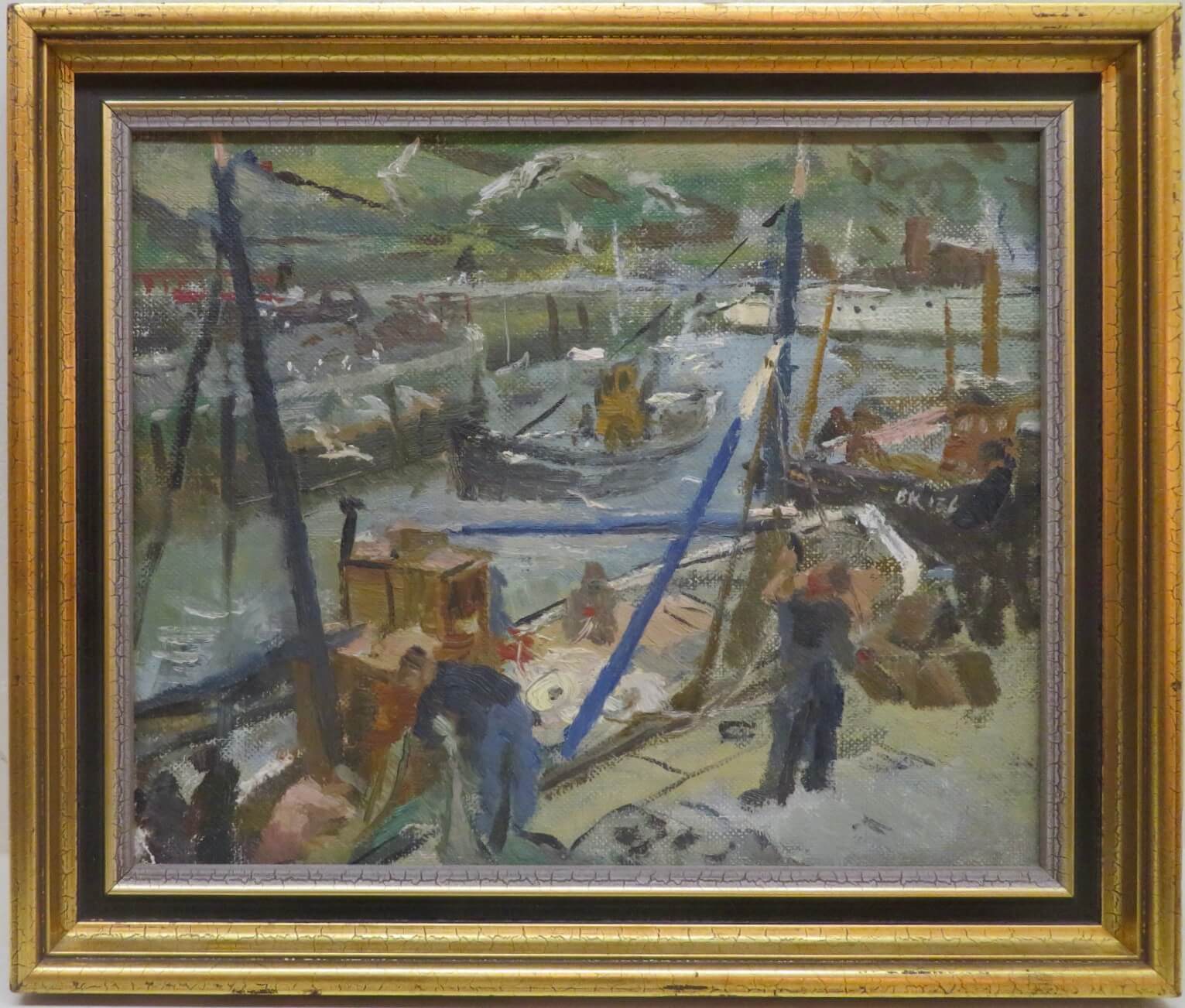 TITLE:”Fishing Harbour Scene” (Devon or Cornwall most likely)