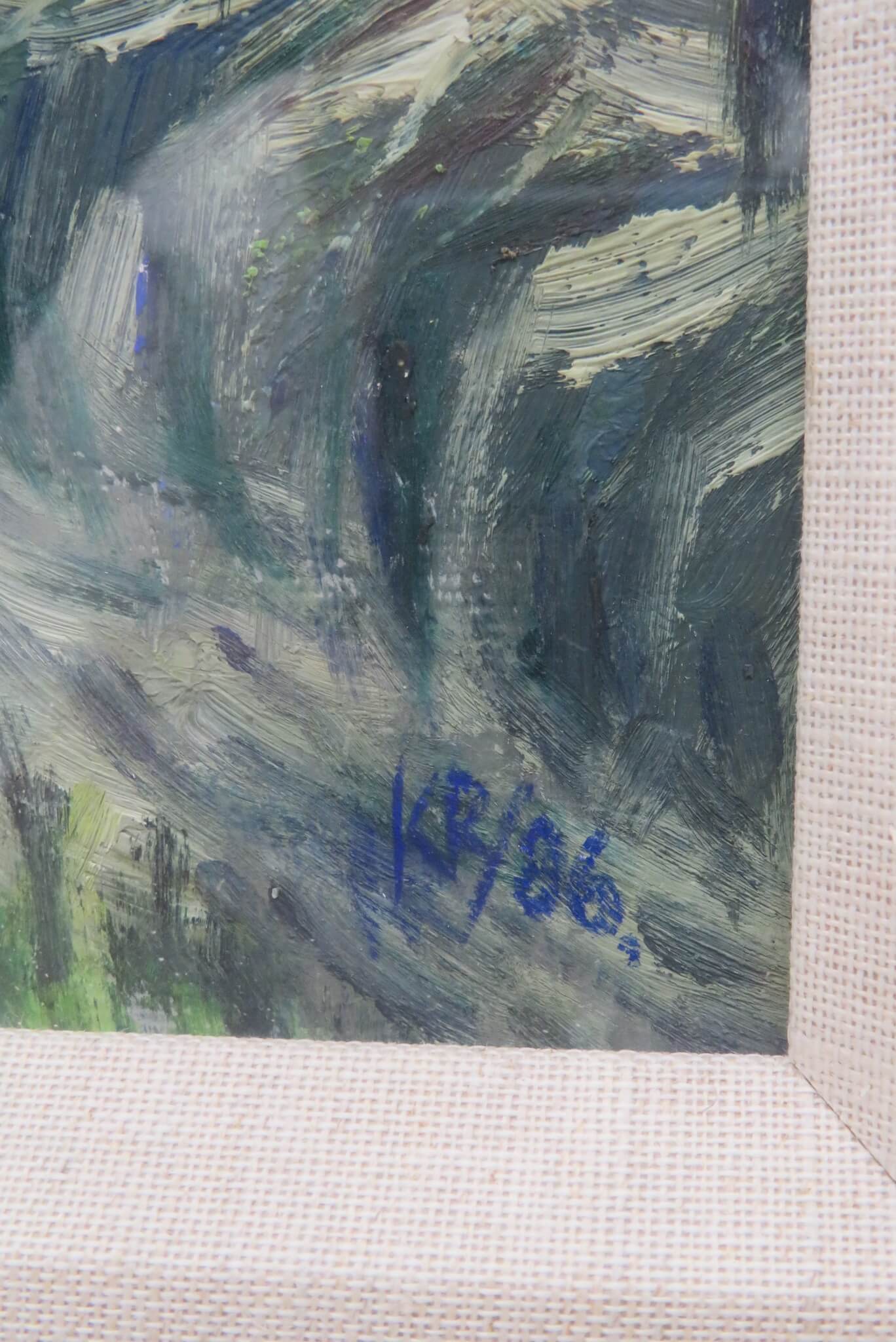 DETAIL: Kenneth Roberts was a painter and teacher, born in Applegate, Arbroath, Angus, noted for his depictions of that area, who studied at Dundee College of Art, 1950, under Alberto Morrocco. After National Service he taught 1958–93, being principal teacher of art at Harris Academy, Dundee, from 1973. In The Scotsman, Duncan Macmillan termed Roberts “the supreme painter of the Scottish winter… one of the finest landscape painters of his time.” Roberts showed regularly at the Royal Society of Arts and Dundee Art Society and was given a first show in Edinburgh in 1998 at Bourne Fine Art.