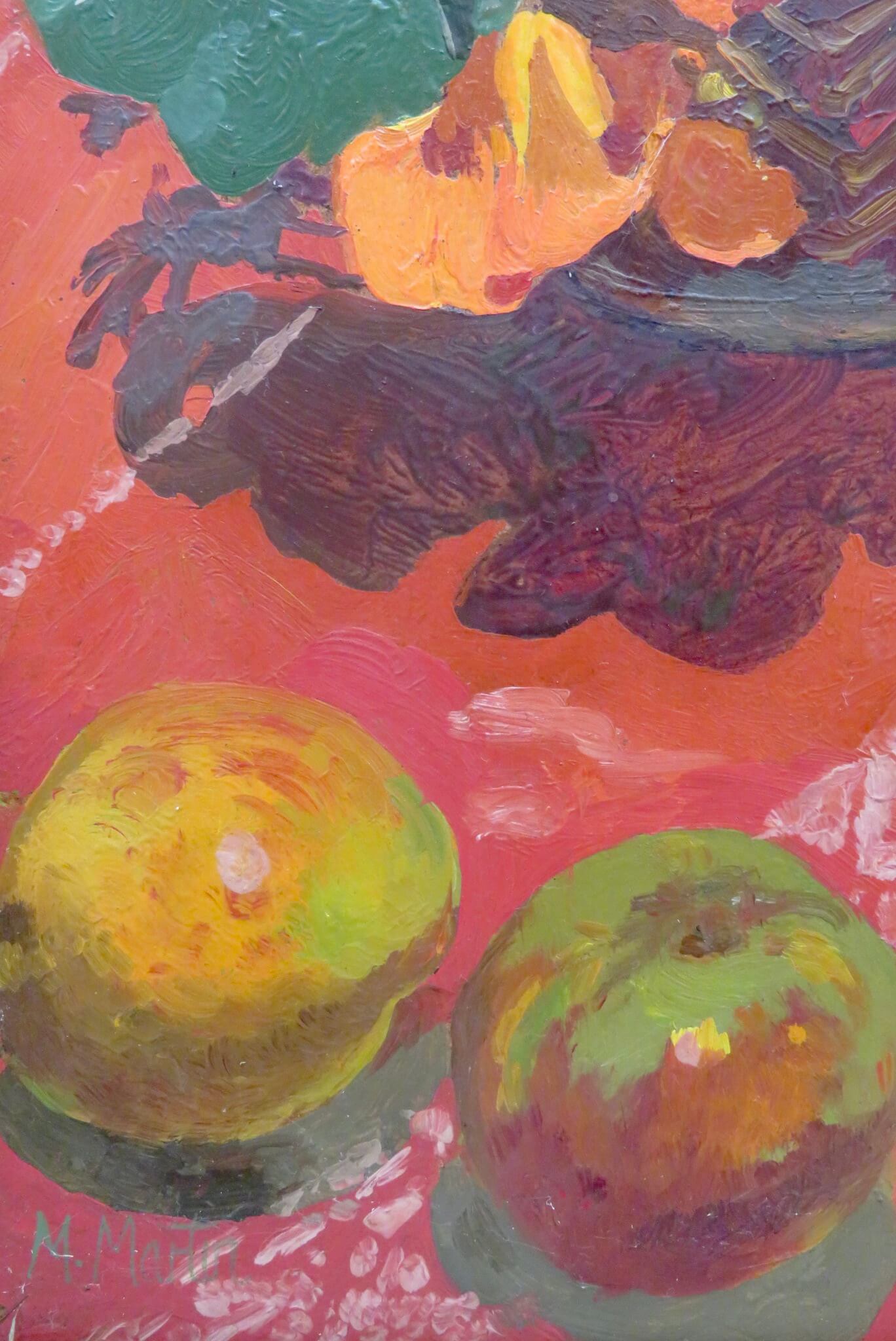 DETAIL: Nice early work by well collected Cornish painter Mary Martin. Born in Cornwall, where she settled at St Dominic, Callington. Almost all of Martin’s work was done out-of-doors, where she worked swiftly to capture changing effects of light, flowers being a special feature. She did her pre-diploma studies at West of England College of Art in Bristol, diploma at Cheltenham College of Art and postgraduate work at Royal Academy Schools which she left in 1975 to paint full-time. She was the subject of a BBC Television film in the Look, Stranger! series, Daffodils, Bullions and Steam. Martin showed in mixed exhibitions including RA from 1975; New Grafton Gallery, from 1979; Interceltic Festival, Lorient, France, 1982; and Oliver Swann Galleries, 1988. She was a frequent solo exhibitor, showing at St Dominic Parish Hall, 1976; Plymouth City Museum and Art Gallery, 1978; later ones including Oliver Swann, 1989, and St Dominic Parish Hall, 1990. National Trust, National Maritime Museum in Greenwich and Plymouth’s Art Gallery hold examples.