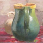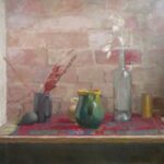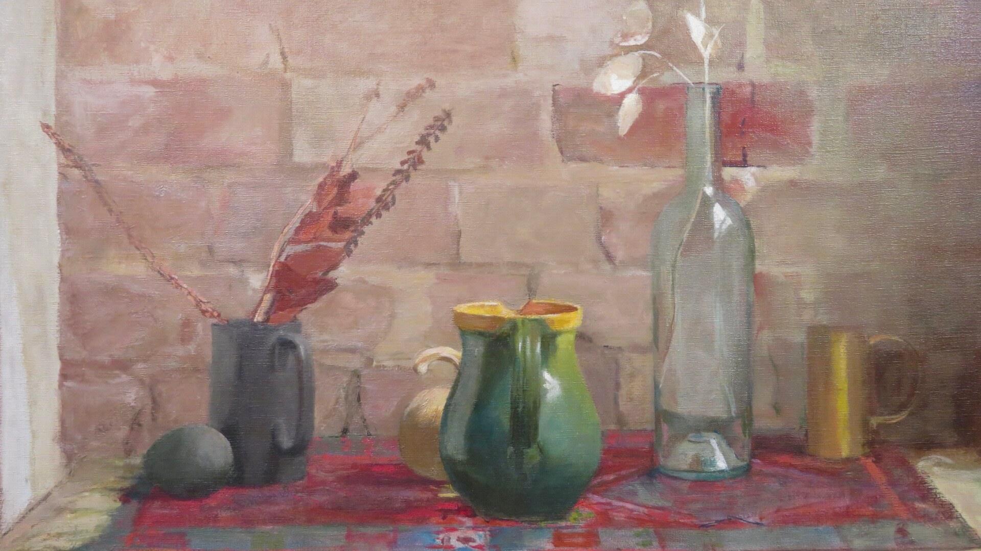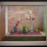 DETAIL:  Espley painted mainly from life, often drawing first. He also photographed to aid memory of the subject, mostly using an instant camera. He mostly worked in oils. His usual palette was: Flake or Titanium White, Genuine Naples Yellow, (both pale and dark) Vermillion, (genuine) light red, Raw Umber, Ultramarine and Viridian. He sometimes worked in watercolour and pastel.